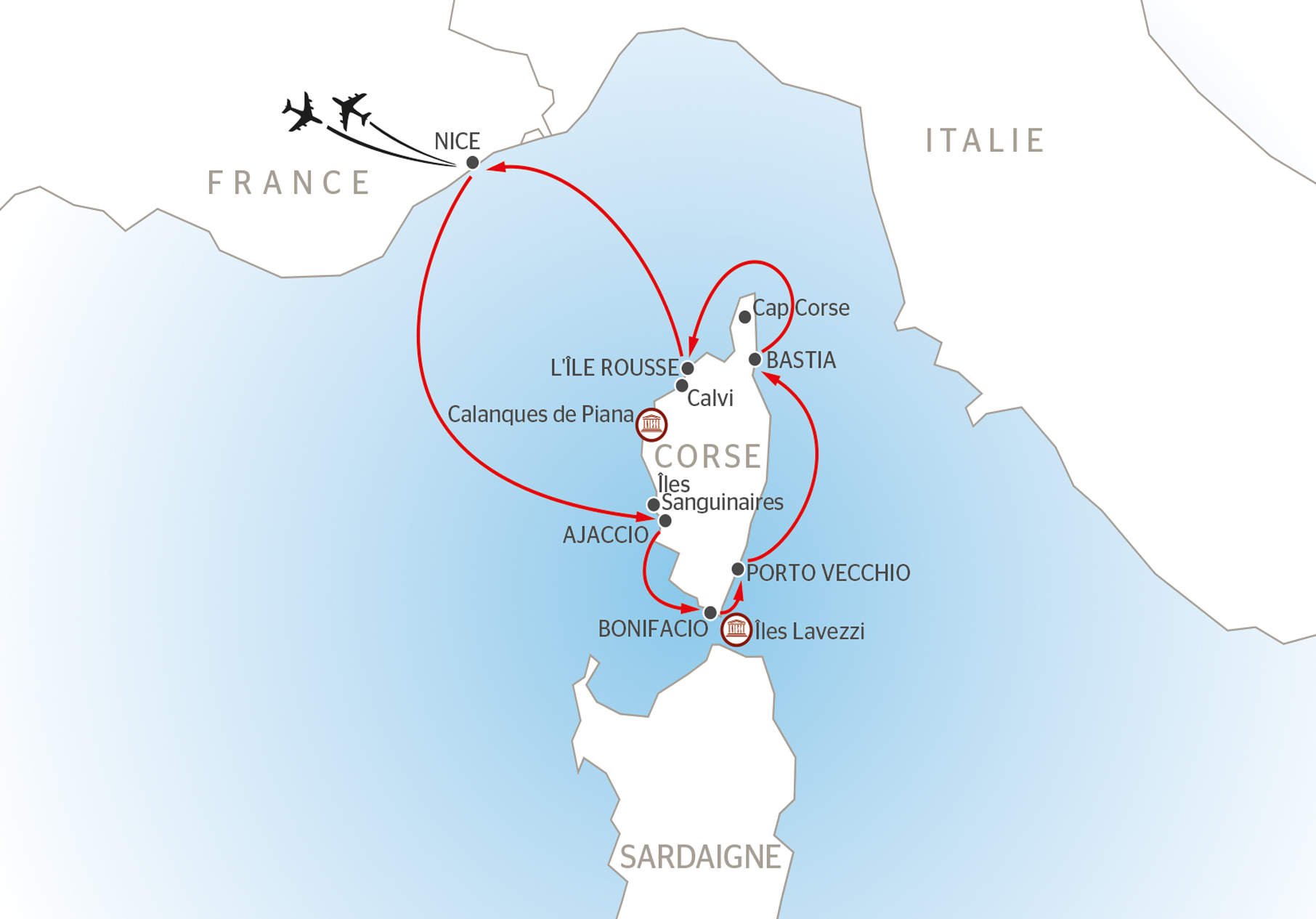 Le Cap Corse (déjeuner inclus). C’est le territoire le plus au nord de la Corse, un patrimoine naturel sauvage préservé qui dévoile ses forêts, ses montagnes, ses petits villages perchés à flanc de montagne mais aussi ses magnifiques petites criques. Vous traverserez : Erbalunga, adorable village de pêcheurs et le village typique de Luri. Arrêt à Patrimonio pour une dégustation de vins, charcuteries et fromages corses. La Corse profite d’un climat méditerranéen, marqué par des contrastes dus à sa situation géographique, mais également à son relief montagneux. Son vin tire son essence de la douceur estivale de l’île et de son ensoleillement exceptionnel.