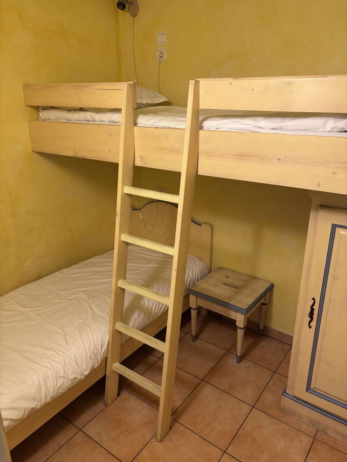 41 m² environ, un séjour avec une banquette lit gigogne, deux chambres 2 lits 1 personne, une salle de bains ou une douche.